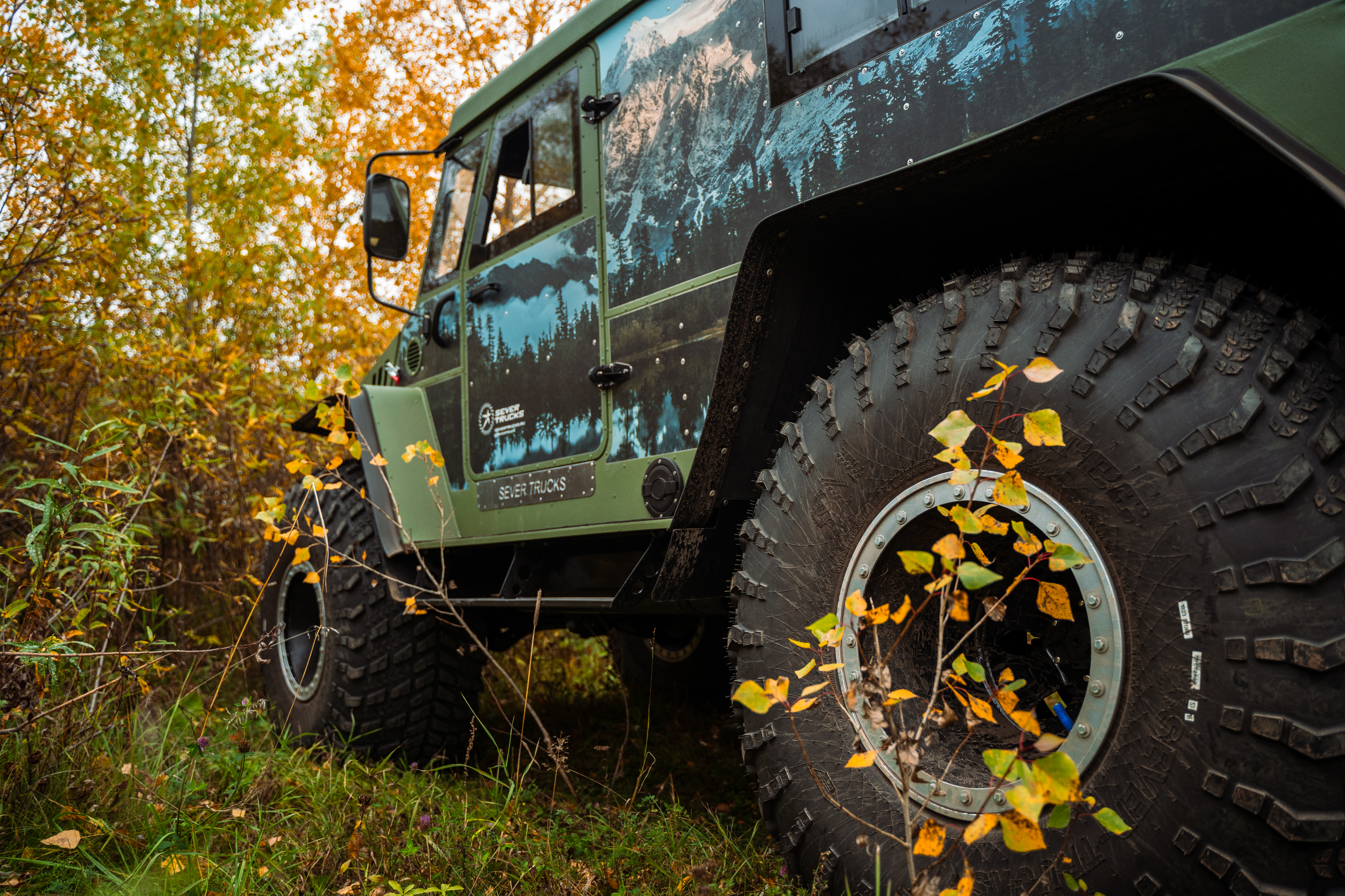 и нестабильных грунтах — снегу, болотах, песке. Благодаря сверхнизкому давлению (от 0,2 до 0,5 атм) шины обеспечивают отличное сцепление с поверхностью и значительно снижают нагрузку на грунт, что делает их идеальными для вездеходов